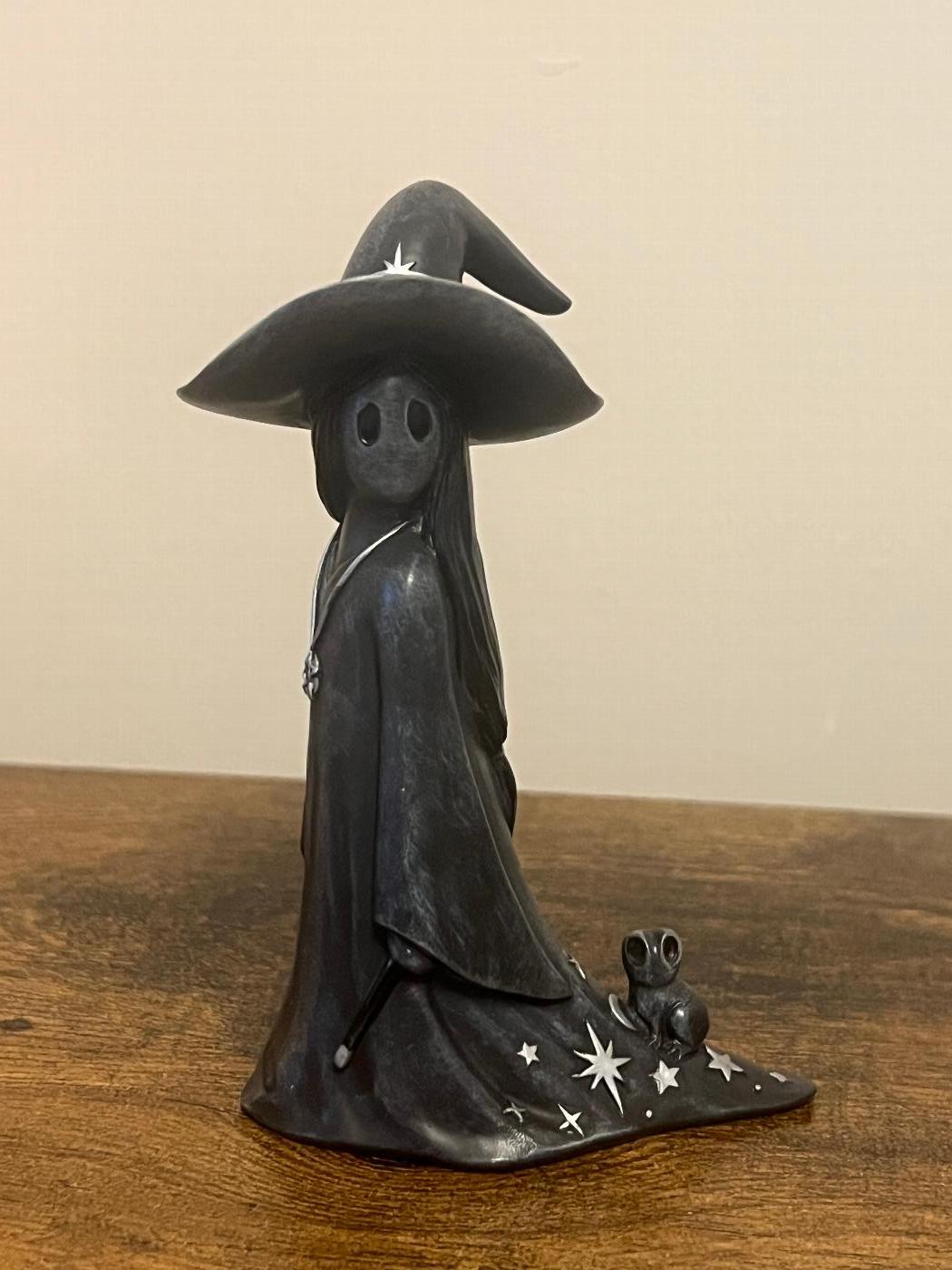 Elegant witch soul figurine with frog companion